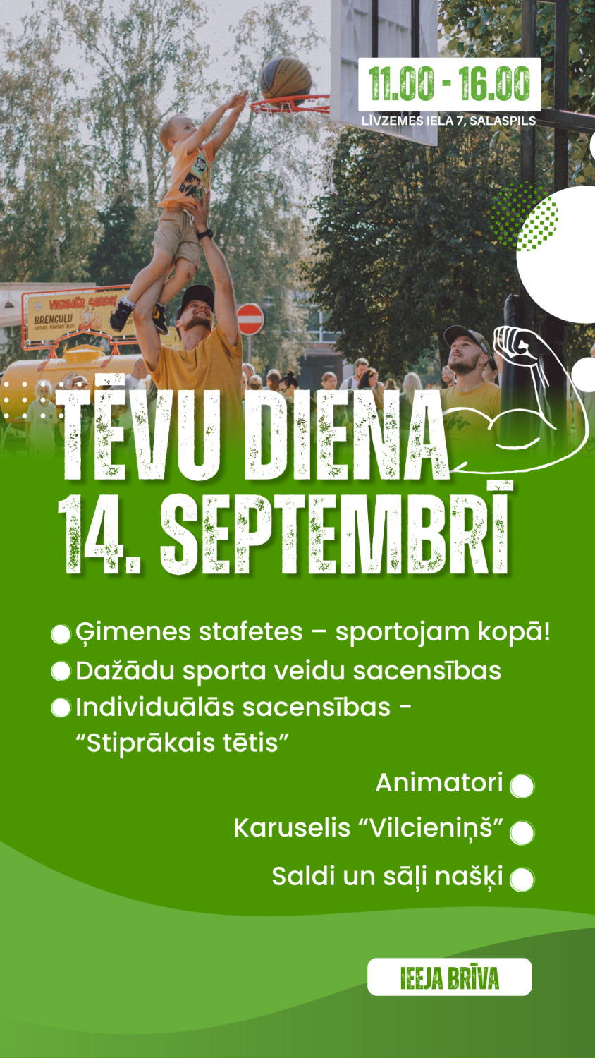 Salaspilī Tēva diena💸 VELVIENS 100€ #KONKURSS ! 💸Gribi vinnēt 100€? 🔥Viss, kas Tev jādara:1️⃣ Pasākuma laikā veic maksimāli daudz publikāciju (video un foto) savos sociālajos tīklos..Tago @realspiedzivojums , @salaspilskultura un #TēvuDienaSalaspils2️⃣ Jo vairāk postu – jo lielākas iespējas uzvarēt! 🚀3️⃣ Tago draugus, reposto story šo video, dari troksni un paķer savu 100€ CASH 💶un LIELO KAUSU 🏆jau pasākuma dienā 14.09.2025. Salaspilī! Un uzkāp uz skatuves un kļūsti POPULĀRS!💪Pasākuma detalizētu programmu skaties zemāk! 👇#balva #realspiedzivojums #pasākumiģimenēm #pasākumi #bezmaksasPasākums #salaspils #salaspilskultūra 💵🏆SOCIĀLO TĪKLU GURU (vairāk nopublicēts video un foto un ietagotja @realspiedzivojums un @salaspilskultura (fb, ig, tiktok) un lielākie skatijumi! Kā nopelnīt 100 Eur💶+ milzu kausu 🏆Tēvu dienā Salaspilī 14.09.2025. ? 1. https://www.instagram.com/reel/DOi7Vq4jS8p/2. https://vm.tiktok.com/ZNdgRoqHf/3. https://www.facebook.com/share/r/16FmmpNtJd/ PASĀKUMA PROGRAMA #TēvuDienaSalaspils 14.09.2025. 11:00-16:00🌅3 INDUVIDUĀLIE uzdevumi: (stiprākais tētis un dēls)1. Naudas kofera noturēšana ar miljons dolāriem (vai svarbumbas) 2. Balstā guļus atspiešanās (roku saliekšana - iztaisnošana) uz paklāja3. Šaušana milzu Kaķeni- pasaku zemes iekarošana(Pēc visu trīs uzdevumu izpildes rezultāti tiek summēti, un nosaka 1., 2. un 3. vietas ieguvējus.)🌅ĢIMENĒM: 7 stafešu uzdevumi ģimenēm. 4. Milzu slēpju sacensības (2 komandas vienlaicīgi) 5. Jautrās stafetes komandās (5 komandas vienlaicīgi) vai milzu 2m bumbas stafete6. Mīnu lauku šķērsošana pa pāriem7. Lidojošo šķīvīšu mešana zemes mērķī8. Pirātu lādes satura atcerēšanās! 9. Attālinātas vadības dzērienu transportēšana ar kustīgajie plauktiem10.Okeāna atīrīšana no plastikāta (Arī šeit tiek apbalvotas ģimenes par iegūtajām 1., 2. un 3. vietām.)🌅3 KOMANDU UZDEVUMI: kuros apvienojas 5 un vairākas ģimenes (ap 15-20 dalībniekiem pēc reģistrēšanās saraksta) 11. Salaspils Ģimeņu piramīdas konstruēšana12.Bitkoinu izcelšana no būra13. Desu vilkšanas turnīrs (Arī šajā kategorijā tiek noteiktas 1., 2. un 3. vietas.)14. 🌅 KOPĪGS UZDEVUMS VISIEMAr striķi izveidojam vienu apli, otru apli (mazāku) un trešo apli(vēl mazāku) No augšas(skatuve vei trepes) foto un video ar saukli! STIPRAS ĢIMENES-STIPRA LATVIJA!REĀLS PIEDZĪVOJUMS!Jāāā!19. NOSLĒGUMA CEREMONIJA pasākuma kopasavilkums, kausi medaļas, diplomi, arbūzi, pārsteiguma dāvanas: 1)Tēviem un dēliem, 2)Ģimenēm, 3)komandām ✨ Gribi 100€? Tiekamies 14.sept. Salaspilī Tēva dienā Kas jādara: Ietago vismaz 2 savējos, kuriem noteikti jāpiedalās! Šo video sharo sava storijā un ietago @Salaspilskultura un @realspiedzivojums un max reposto!Tēvu dienā individuālie uzdevumi, Ģimenes stafetes, apvienoto ģomeņu lielie uzdevumi un kopīgs uzdevums bisiem! Būs ģimeniski, jautri, aktīvi un saliedējoši! Noskaidrosim stiprāko Tēvu un dēlu kurš ilgāk noturēs koferi ar miljons dolāriem)! 🎠 Bērniem – karuselis “Vilcieniņš”, jautri animatori un, protams, saldi un sāļi našķi!🏆 Dienas noslēgumā – svinīga apbalvošana, kausi, medaļas un gardas balvas! 🎟️ Dalība – pilnīgi BEZ MAKSAS!👉 Nāciet ar visu ģimeni, draugiem, skolasbiedriem, paņem arī https://www.instagram.com/reel/DOeDMsBjbzO/ https://youtube.com/shorts/D1JKnv-zhFk Iepriekšējā Turpināt